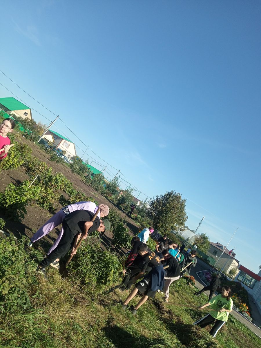 Учащиеся 5-11 классов активно работали на участке. Они перекапывали землю, чтобы достойно подготовиться к началу холодов.