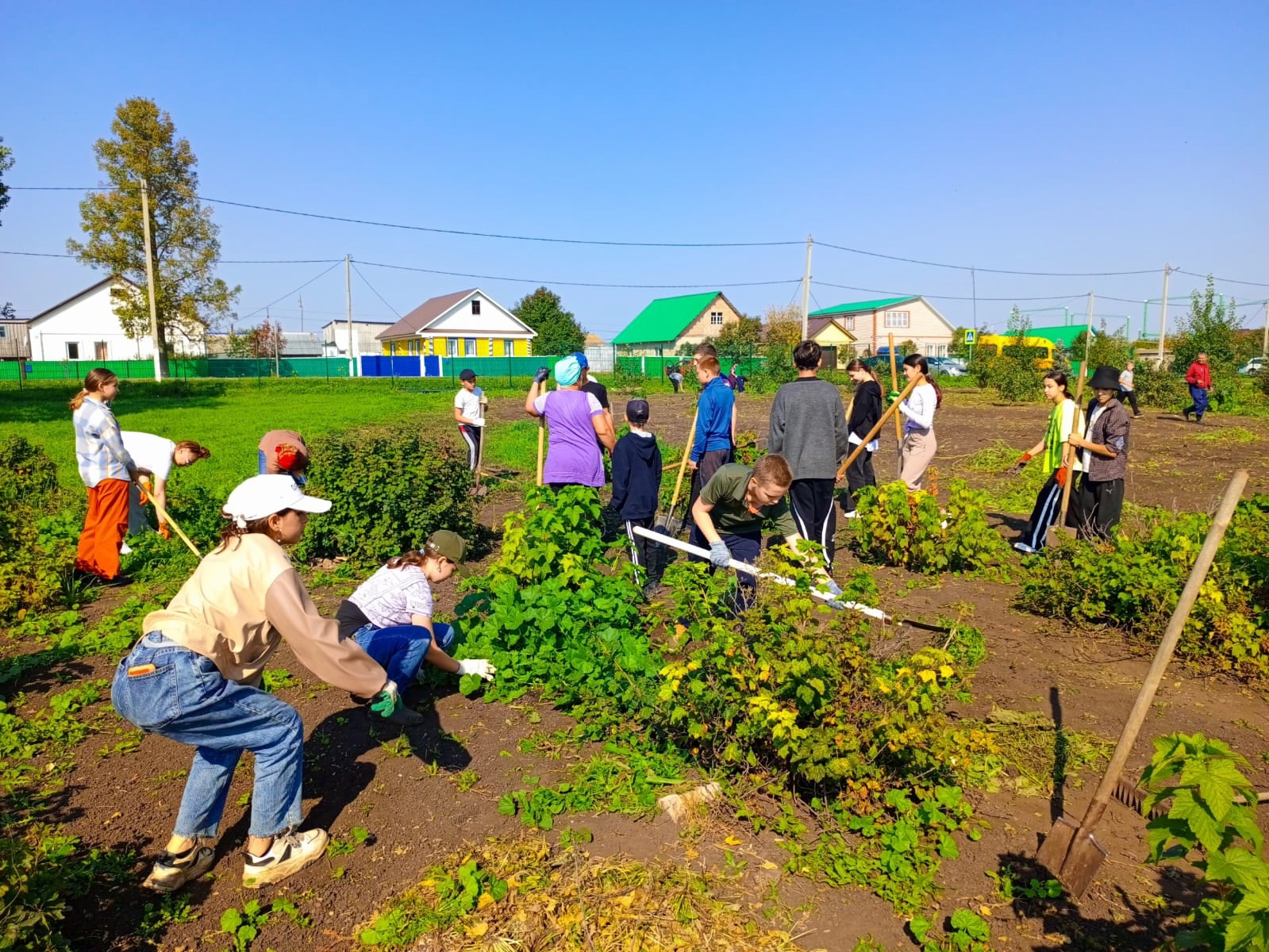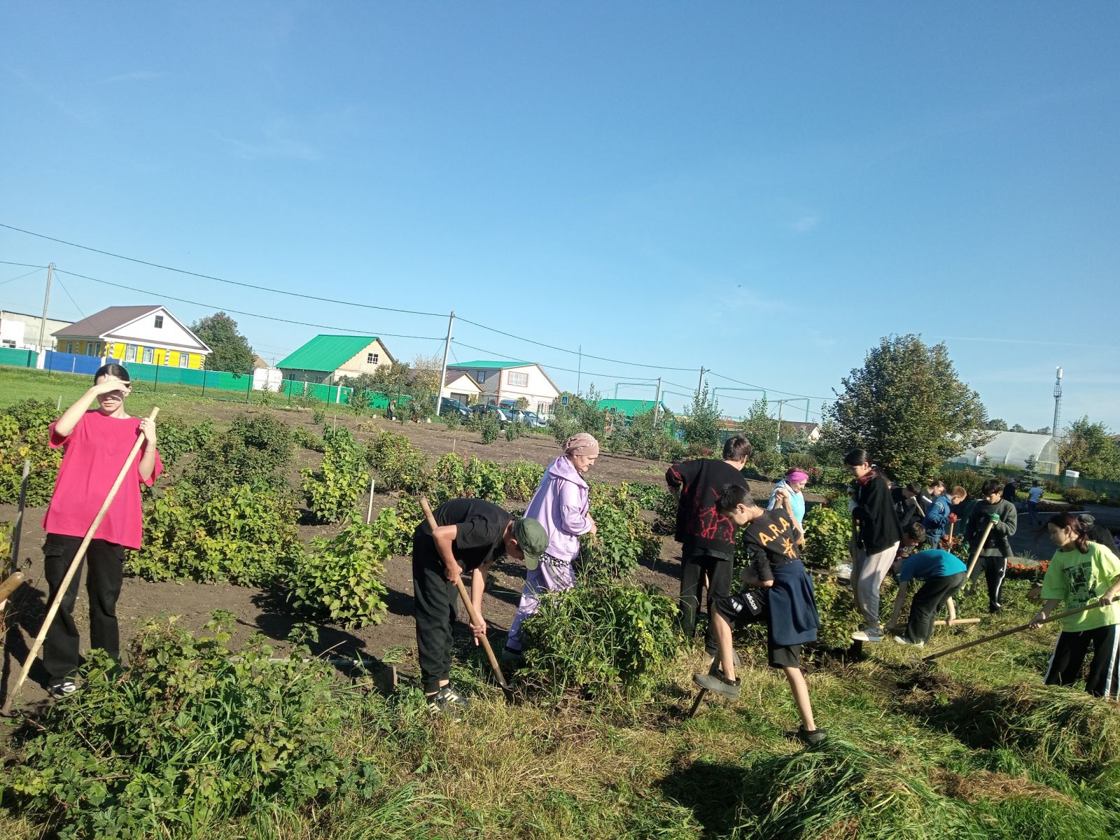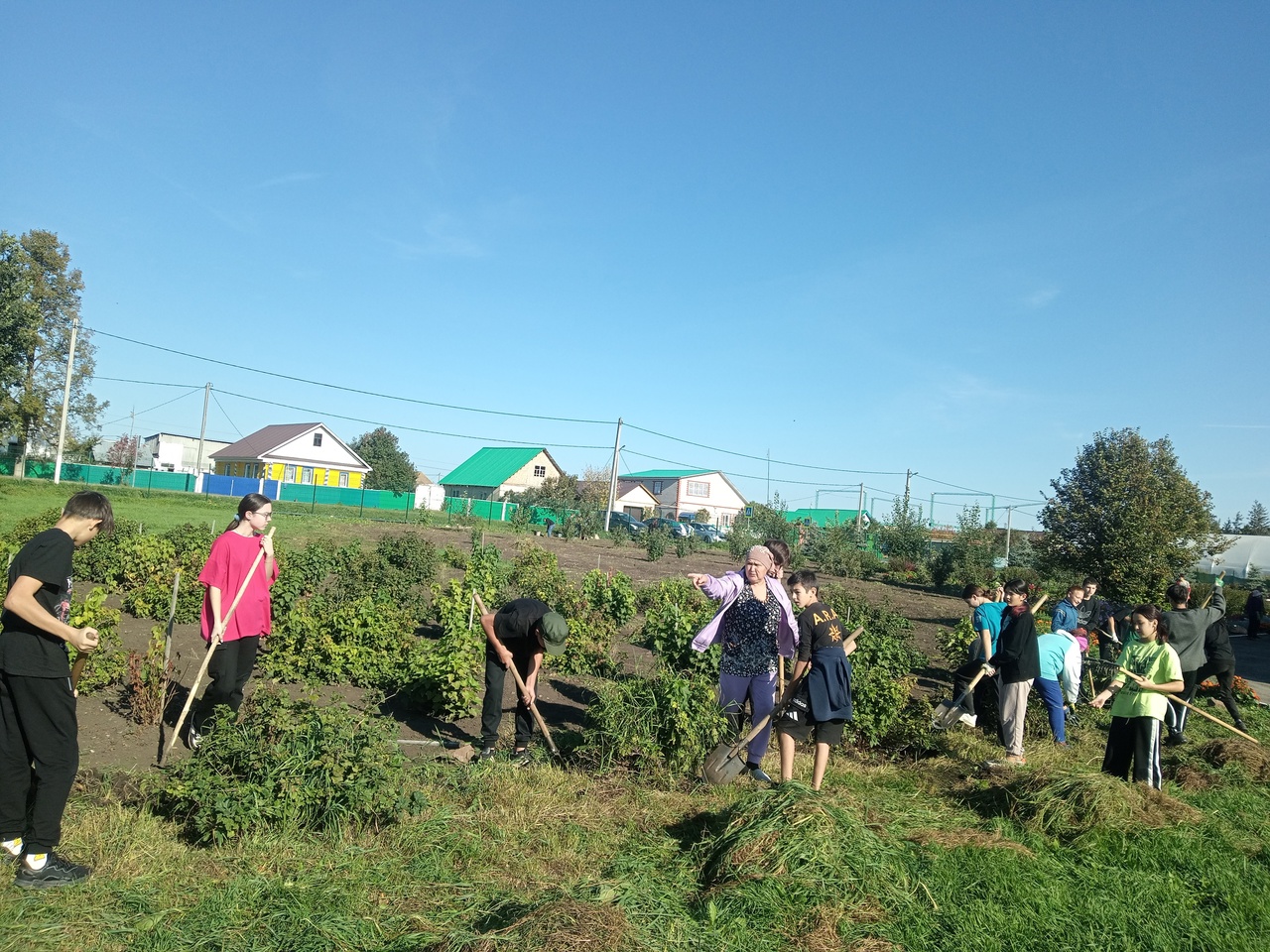 13 сентябрь көнне мәктәбебездә мәктәп яны территориясен җыештыру буенча традицион көзге өмә булып узды, анда мәктәп укучылары катнашты.