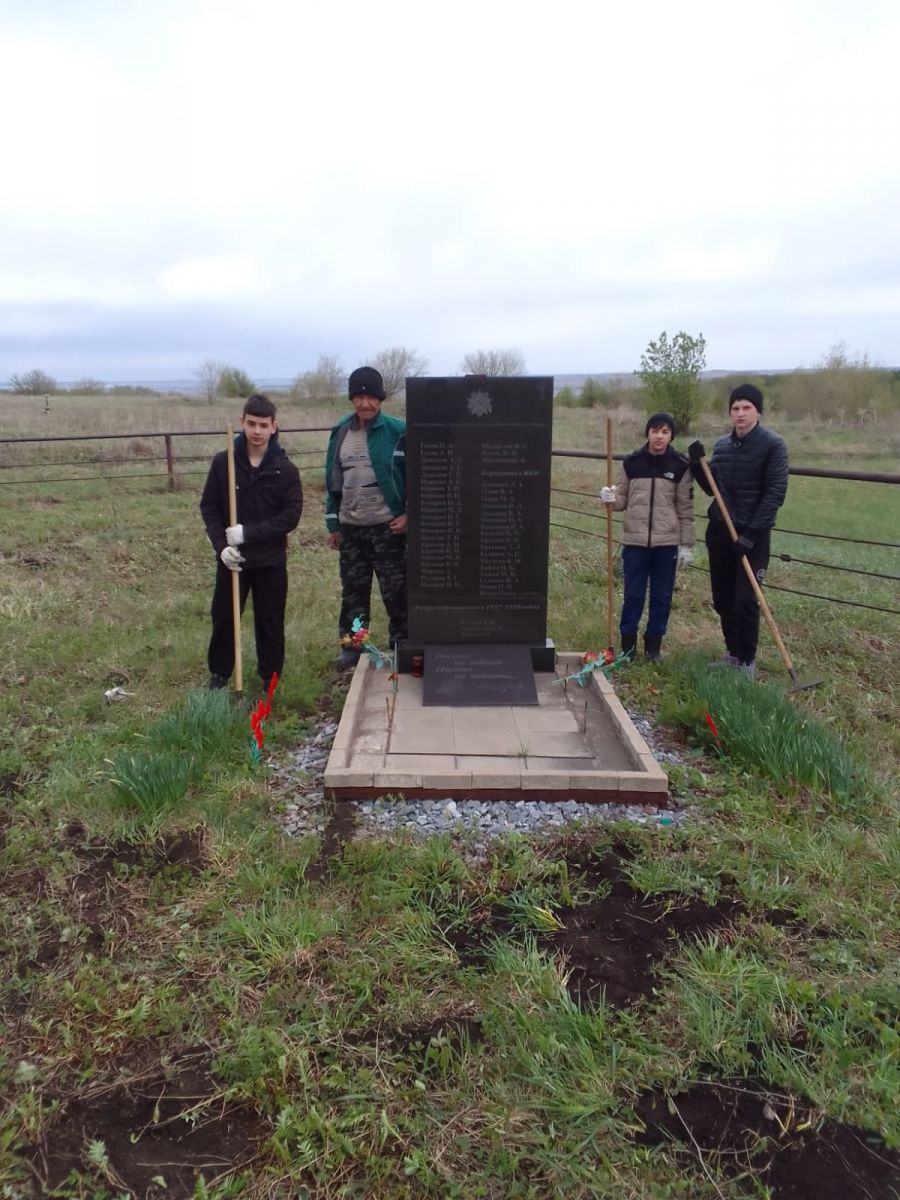 Бүген, 8 класс укучылары физкультура укытучысы Сахипгараев И.Ш. белән берлектә Азнакай районы Мәлбагыш авыл җирлегенә караган Каменка, Танаевка авылларында урнашкан һәйкәлләрне чистарттылар.