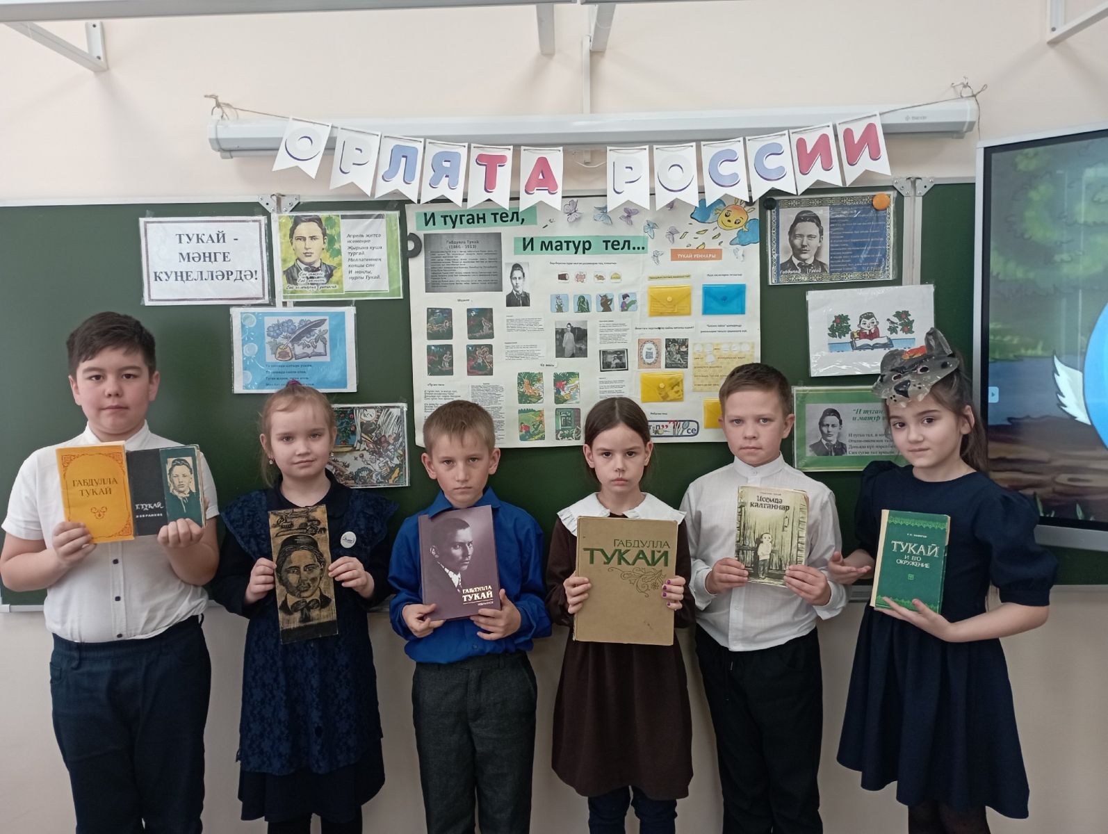 Во 2 классе (кл.рук. Сулейманова Л.Т.) прошел классный час, посвященный ко дню рождения писателя Габдуллы Тукая. С наступлением весны татарский мир празднует дня рождения великого поэта Габдуллы Тукая. В этот день преображается даже природа, теплые солнечные лучи согревают не только окружающую среду, но и человеческие души. В сопровождении презентации дети вспоминали о его нелёгком сиротском детстве, о значении деревни Кырлай в его жизни и творчестве.