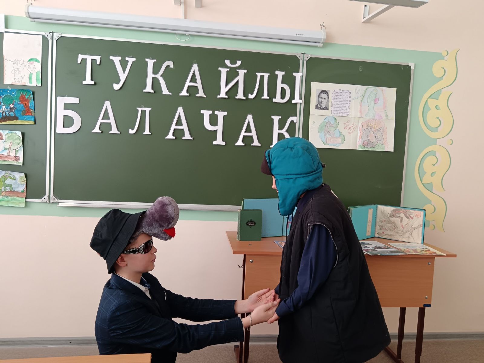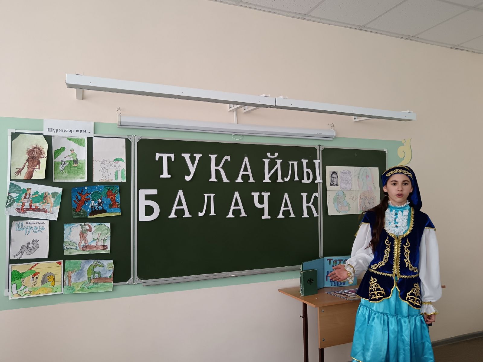 Дети читали стихи «Сабыйга», «Кызыклы шәкерт», «Бала белән күбәләк». Много лет прошло со дня смерти великого поэта Габдуллы Тукая, но он продолжает и будет жить в наших сердцах.2 нче сыйныфта (класс җитәкчесе Сөләйманова Л.Т.) язучы Габдулла Тукайның туган көненә багышланган класс сәгате узды. Яз җитү белән татар дөньясы бөек шагыйрь Габдулла Тукайның туган көнен бәйрәм итә. Бу көнне хәтта табигать тә үзгәрә, җылы кояш нурлары әйләнә-тирә мохитне генә түгел, кешеләрнең күңелләрен дә җылыта. Презентация белән бергә балалар аның ятим балачагын, Кырлай авылының аның тормышында һәм иҗатында әһәмиятен искә алдылар.