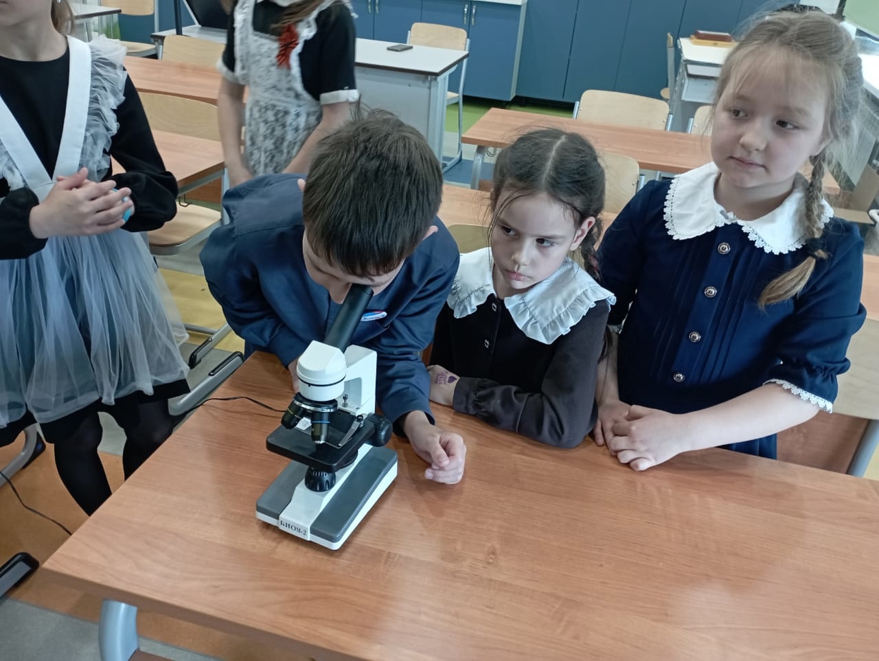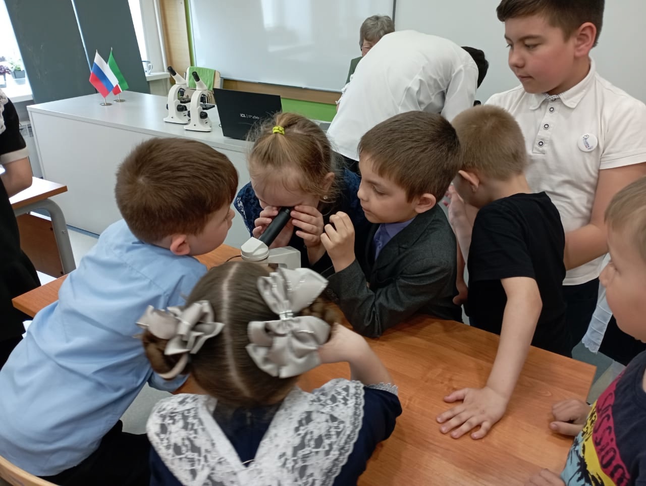 В среду, 23 апреля 2025 года, в гостеприимных стенах МБОУ «СОШ с.Мальбагуш», в самом сердце кипучей недели "Точка роста", распустился дивный цветок – интегрированное внеклассное мероприятие по биологии, словно мостик, соединивший начальное и основное общее образование темой "Удивительный мир клеток". Под чутким руководством учителя биологии, Ашуровой Г. Т., юные исследователи погрузились в захватывающий мир живых организмов и их клеточного строения. Беседа, подкрепленная завораживающими кадрами видеофильма, пробудила в детях жажду знаний. Затем, завороженные, ученики начальных классов прикоснулись к тайне микромира, знакомясь с устройством микроскопа в лаборатории "Точка роста" и рассматривая микропрепараты, раскрывающие все многообразие клеточной жизни. Верными помощниками в этом познавательном путешествии стали учащиеся девятого класса, щедро делившиеся своими знаниями и опытом.