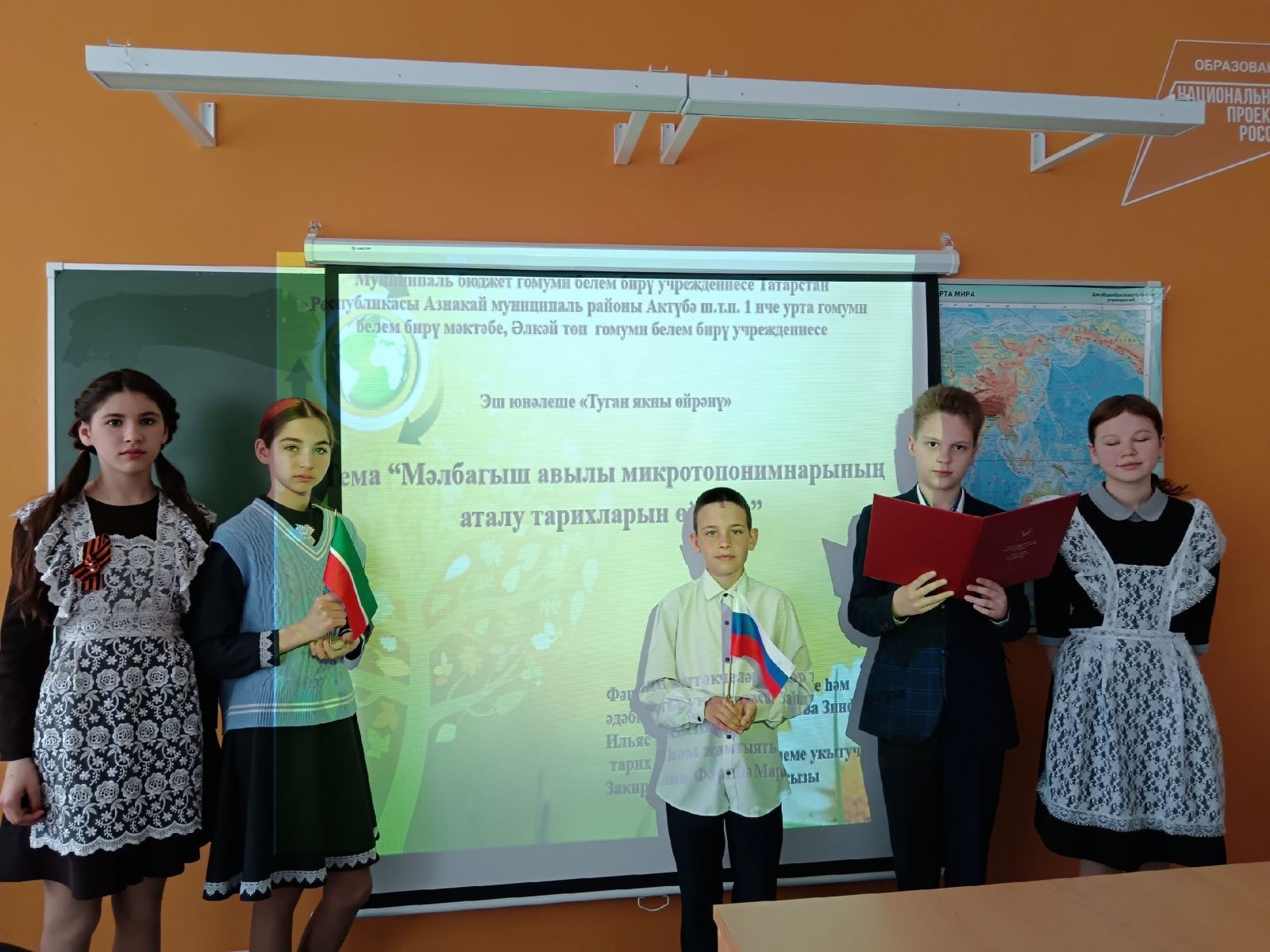 2025 нче елның 24 нче апрелендә, пәнҗешәмбе көнне, Мәлбагыш урта мәктәбендә, география атналыгы кысаларында, 6-8 класс укучылары Мәлбагыш авылы топонимикасының «Ни өчен шулай атала» проектын якладылар.