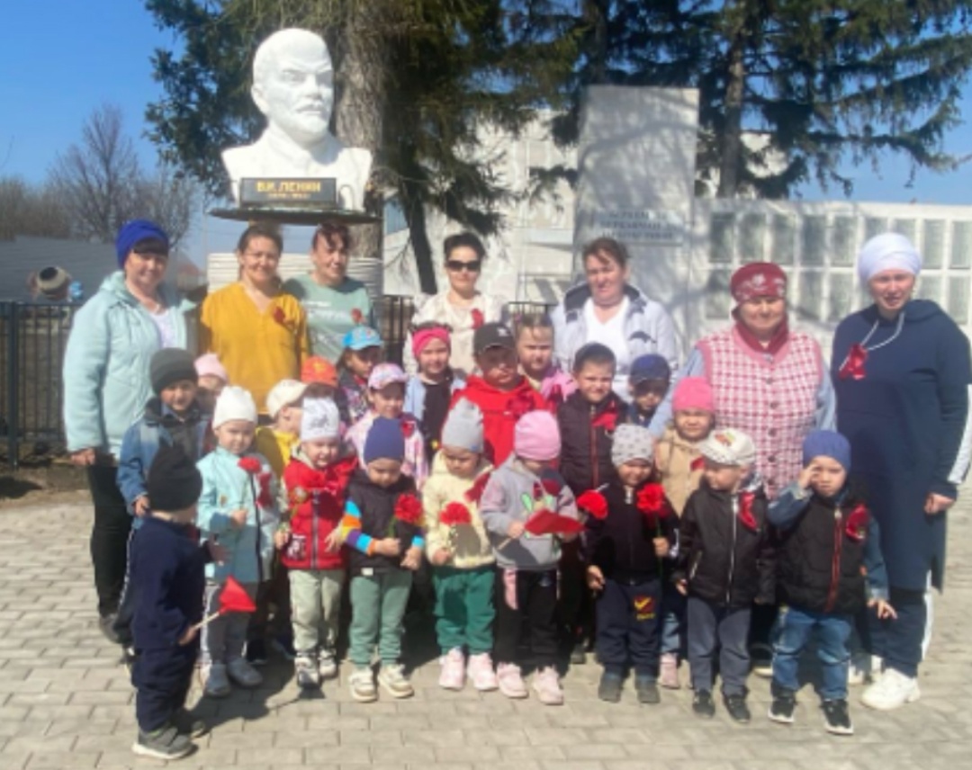 Бүген, без "Тамчы" балалар бакчасы, юлбашчыбыз В.И. Ленинның туган көненә багышлап, яшь буынга патриотик тәрбия бирү үңаеннан, авыл китапханәсенә экскурсиягә барып, аннан тормыш юлы белән таныштык, һәм һәйкәлгә чәчәкләр салдык.