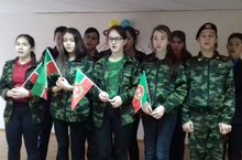 Отряд Юнармии исполняет гимн РТ на муниципальном этапе Республиканского конкурса "Музыкальный марафон"