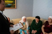 90 яшльлек юбилее белән ветеран укытучы Шәрипова Фәүзия Шәрип кызын Тымытык урта мәктәбе коллективы тәбрикләде