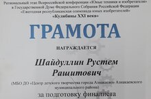 Ученик 9 класса Шакирзянов Руслан принял участие региональном этапе Всероссийской конференции "Юные техники и изобретатели в Государственной Думе Федерального собрания РФ "Ежегодная республиканская олимпиада юных изобретателей" "Кулибины XXI века" и занял 2 место. Руководитель Шайдуллин Р.Р. награжден грамотой за подготовку финалиста. Поздравляем!!!