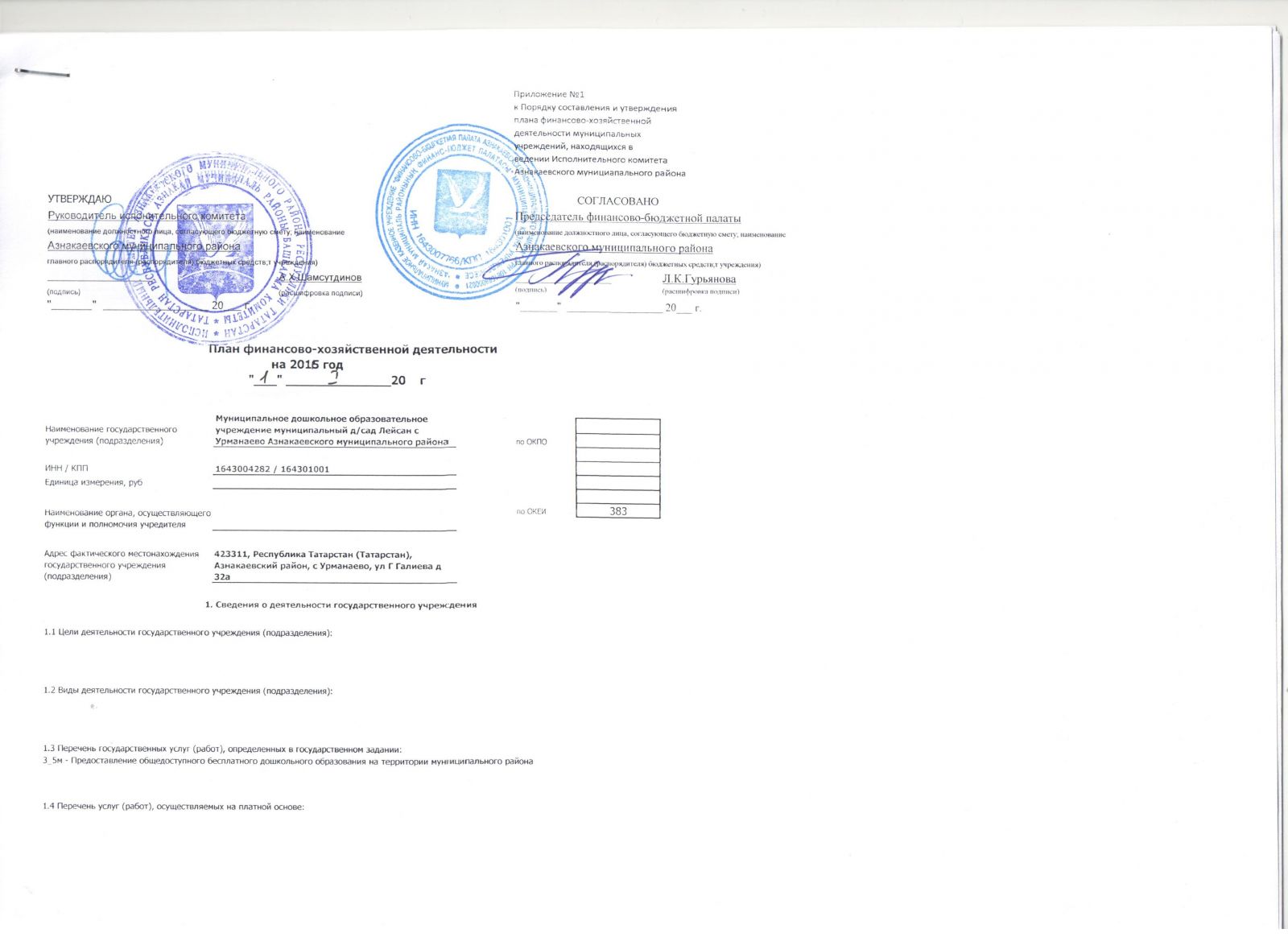 Короткое название: МБДОУ "Детский сад"Ляйсан" с.Урманаево Азнакаевского муниципального района РТ