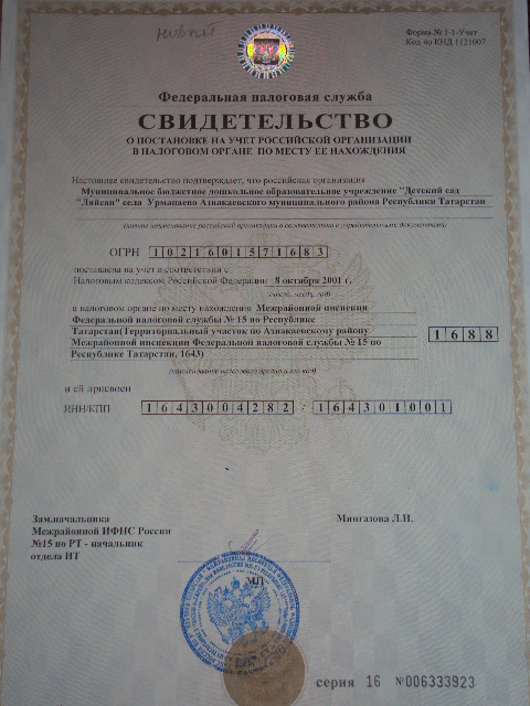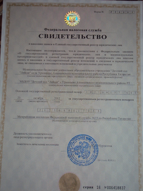 Короткое название: МБДОУ "Детский сад"Ляйсан" с.Урманаево Азнакаевского муниципального района РТ