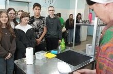 На базе центра "Точки Роста" во время каникул прошли встречи учителей естественно-научно направленности с учениками, где во внеурочной деятельности учителя организовали лабораторные опыты.