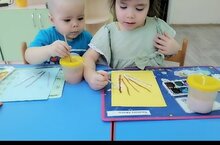 Уртанчылар тцркеме баллары рщсем шцгылендщ тал песие ясадылар/Дети средней группы рисовали вербу на занятии рисования