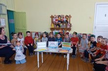 Китаханәче Рафилә апабыз,Фәнис Яруллинга 85 ел тулу уңаеннан,балаларны язучының "Зәңгәр күлдә ай коена" әкияте белән таныштырды./ В честь 85 летия со дня рождения татарского писателя Фаниса Яруллина, наша библиотекарь познакомила детей с его сказкой.