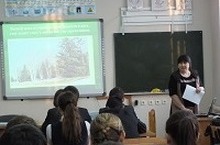 Тәрбия сәгатендә география укытучысы Шәйхиева Г.С. 6-9 сыйныфлар өчен экологик дәрес уздырды. Дәрестә каен агачы, аның кулланылышы, файдалы яклары турында бик күп информация бирелде.