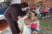 Медсестра Алия апа чәчләрнең, кулларның чисталыгын тикшерде.