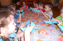 Бакчабызда тәрбияләнүче балалар Әниләр көне уңаеннан кадерлеләрен сөендерү өчен кулдан тынычлык кошлары - күгәрченнәр ясадылар.