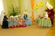 Зурлар һәм мәктәпкә хәзерлек төркеме балалары "Социаль-шәхси белем бирү өлкәсе" буенча театральләштерелкән күренеш "Каз өмәсе" күрсәттеләр. Анда кул эшләре, кунакчыллык, туган авылга һәм башка милләт халкына булган мөнәсәбәтләр чагылдырылды.