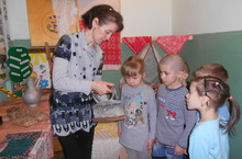 Мәктәпкә хәзерлек һәм зурлар торкемендә тәрбияләнүче балалар "Туган җирем - Татарстан" проекты барышында бакчабызның музей почмагы белән таныштылар. Тәрбиячеләре Исрафилова Раилә аларга борынгы ядкарьләр турында сөйләде.