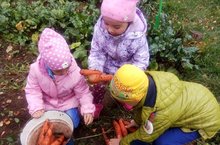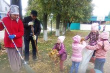 Бакчада хезмәт тәрбиясенә зур әһәмият бирелә. Балалар апалары белән бергә бакча территориясен коелган яфраклардан чистарталар.