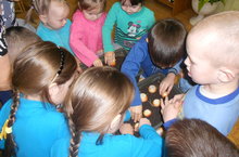 Уртанчылар төркемендә тәрбияләнүче балалар ай саен туган көн бәйрәме уздыралар. Алар бүген январь аенда туган төркемдәшләрен - Ансарны, Гаделне, Зифаны - туган көннәре белән котладылар, бергәләшеп "Ак калач" уйнадылар.