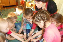 Уртанчылар төркемендә тәрбияләнүче балалар тәрбияче ярдәмчесе Минзифа апалары белән бергә суган утырттылар. Көн саен су сибеп, аның үсүен күзәтеп торалар.