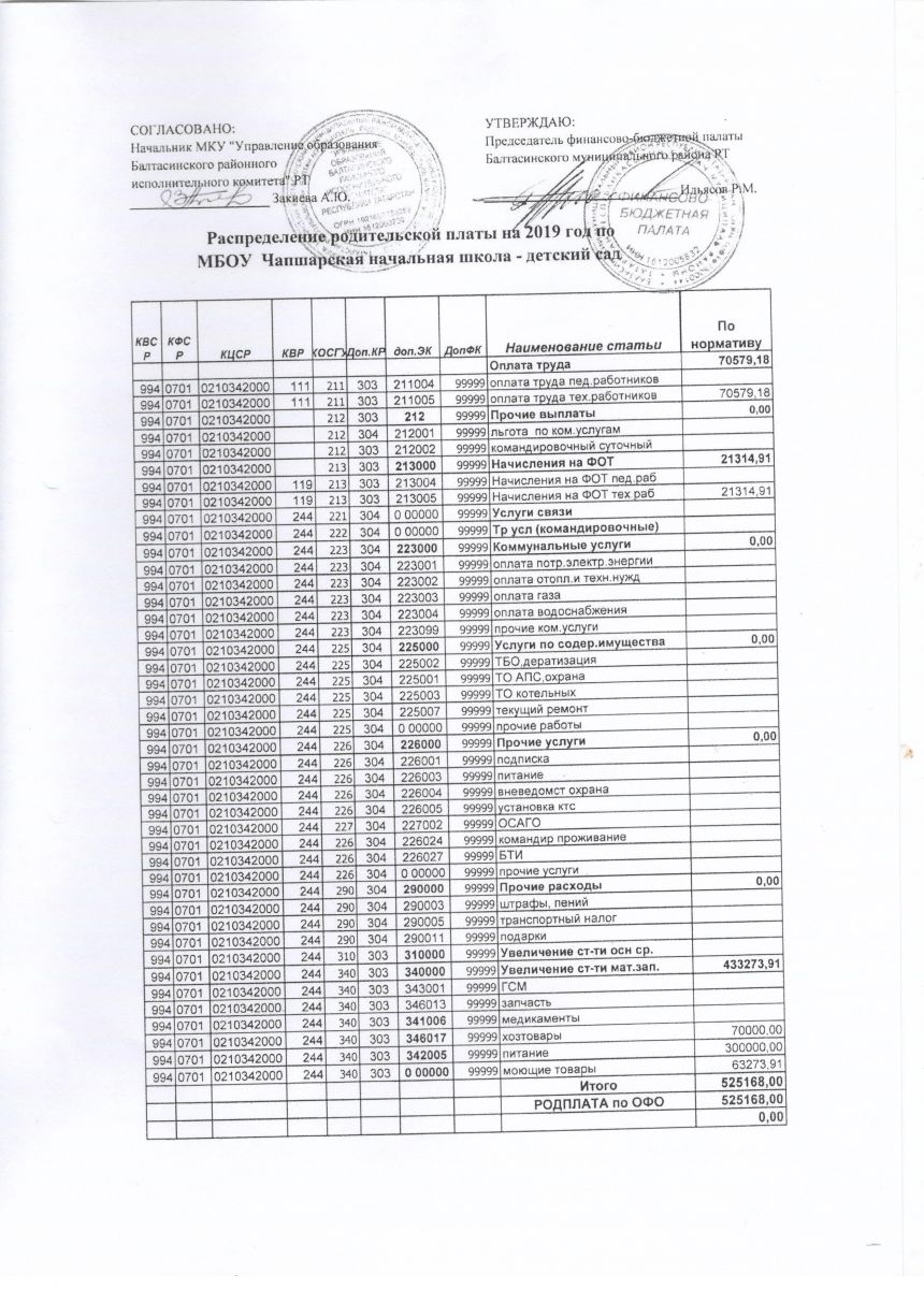 Распределение родительской платы на 2019 год