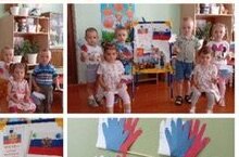 12 июня- День России. Воспитанники группы раннего возраста отметили день России и сделали флажки со следами рук.