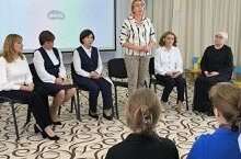 Активисты дарили свои солнечные улыбки сотрудникам детского сада, вручали поздравительные открытки с тёплыми пожеланиями.