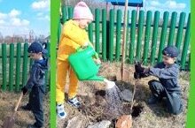 В рамках тематической недели "Подари Земле сад" воспитанник подготовительной группы Фролова Марьям вместе с братом посадили дерево на своем участке.