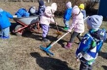 Сегодня дети подготовительной группы решили сделать свой прогулочный участок чище.