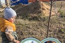В рамках конкурса "Эковесна 2025 " дети младшей группы в саду посадили саженцы яблони.
