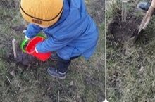 Воспитанники подготовительной группы Галиев Исмаиль,Гилязутдинова Айсылу принимают участие в акции "Подари Земле сад".