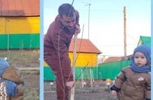 Семья воспитанника группы раннего возраста Файзрахманова Ризата активно участвует в посадке деревьев.