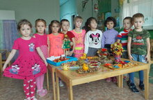 Зурлар төркемендә "Җиләк-җимеш, яшелчәләр!" проектын тәмамлап балалар әти-әниләр белән кул эшләреннән күргәзмә ясадылар!