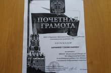МКУ "Управление образования Балтасинского района исполнительного комитета" РТ награждает почетной грамотой воспитателя Шарафиеву Г.Н. за плодотворную работу в деле обучения и воспитания подрастающего поколения. Желаем дальнейших успехов в работе!