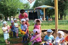 Кояшлы матур бакчабызда гөлләр чәчәк аталар. Ә безнең нәниләребез рәхәтләнеп комлыкта уйныйлар.