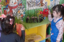Икенче кечкенәләр төркемендә күзәтү һәм тәҗрибә почмагында ел дәвамында эш алып барыла. Менә балалар тәрбияче апалары белән яшел суган, укроп үстерделәр. Яшел витаминнар белән үзләре генә түгел күрше төркем балаларында сыйладылар.