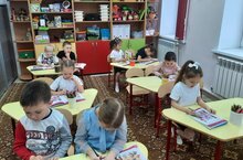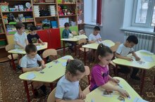 Мәктәпкә әзерлек төркемендә режим моментларында балалар шөгылләрдэ өйрәнгән авазларны ныгыталар. / Дети подготовительной группы в режимных моментах закрепляют пройденный материал .