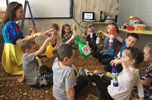 Инглиз теле атналыгы балалар бакчасында бик эчтәлекле,мавыктыргыч,кызыклы уза . Буген зурлар төркеменә Акчәчәк кунакка килде һәм балалар белән уеннар оештырды .Сегодня в старшую группу пришла в гости Белоснежка ,провела с детьми познавательные игры..