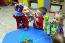 Бүген кечкенәләр төркеме балалары белән “Теремкәй” әкияте буенча курчак театры үткәрелдек. Балалар әкияттә актив катнаштылар. Әкият аларга күп шатлык һәм бәхет китерде, аларга яраткан геройларының ролен уйнап, сихри әкият дөньясының бер өлеше булу мөмкинлеген бирде./ Сегодня с детьми младшей группы провели кукольный театр по сказке ”Теремок”. Дети активно участвовали в представлении. Сказка принесла массу веселья, подарила им возможность побывать в роли любимых героев и почувствовать себя частью удивительного сказочного мира.