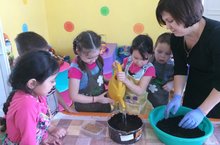 Мәктәпкә әзерлек төркеме балалары белән тәҗрибә үткәрү: “ Ни өчен орлыкларны, үсемлекләрне балчыкка утырталар?” Балаларның тикшерү, тәҗрибә үткәрү эшчәнлеге нигезендә экологик фикер йөртү, иҗади хыял сәләтләрен үстерәбез..