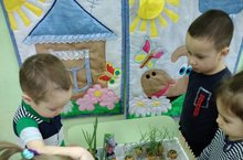 Беренче кечкенәләр төркеме балалары суган ,бодай , кишернен төрле шартларда тишелеп чыгып үсүен күзәтәләр. Тәҗрибә барышында балаларның кызыксынулары,күзәтүчәнлекләре арта. Балалар гади йомышлар үтәп эш гамәлләренә өйрәнәләр