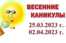 Весенние каникулы – с 25 марта по 2 апреля 2023 года.