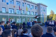Традиционная линейка. Почётное право поднять государственные флаги РФ и РТ предоставили ученикам 8 А класса, удостоенным звания «Горячие сердца» Юсупову Кариму и Валишину Юсупу.