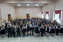 Традицион линейка. Мактаулы хокук - РФ һәм ТР Дәүләт флагларын күтәрү хокукы 8нче А сыйныфы укучылары Йосыпов Кәрим һәм Вәлишин Йосыфка бирелде.