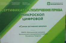9нчы октябрь көнне гимназия укучылары Юнусова Камилә белән Мукминов Булатны "Экопатруль" республика конкурсында җингән өчен бүләкләделәр. Шулай ук гимназия укучылары бу бәйгедә актив катнашкан өчен гимназиягә цифрлы микроскоп бүләк иттеләр. Ул биология дәресләрендә кулланылачак.