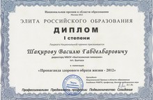 Шакиров Василь Габделбарович - директор МБОУ «Балтасинская гимназия». За проект «Всех участников учебно – воспитательного процесса - к здоровому образу жизни!».