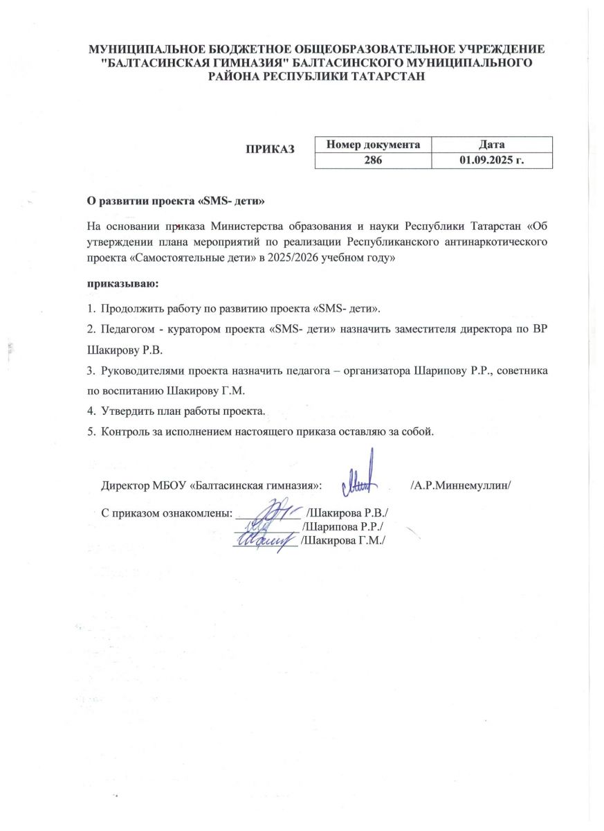 Приказ отряда "SMS - дети" на 2025-2026 учебный год