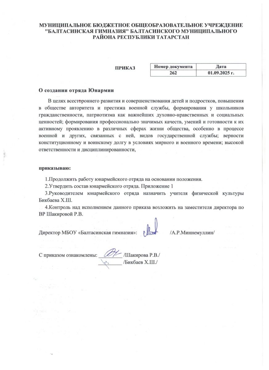 Приказ отряда "Юнармия" на 2025-2026 учебный год
