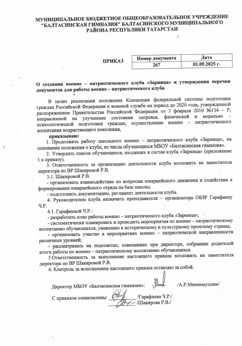 Приказ ВПК "Зарница"/ВПК "Зарница" боерыгы