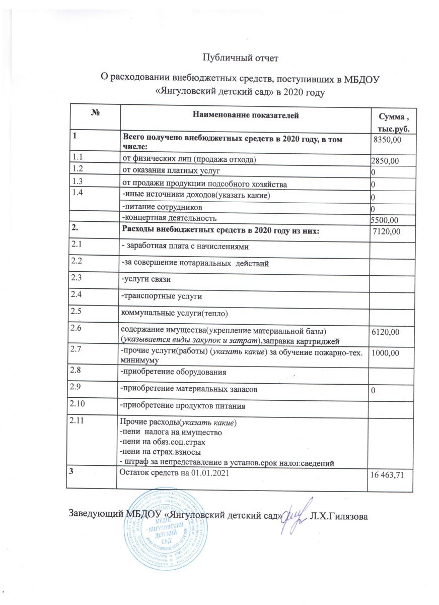 Публичный отчет МБДОУ "Янгуловский детский сад" за 2020.